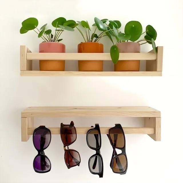 شلف چوبی مینیمال مسترکلاغ، نگهدارنده دیواری کاربردی و زیبا برای گلدان و عینک، طراحی ساده و مدرن، مناسب برای نظمدهی و زیباسازی فضای داخلی، ساخته شده از چوب با کیفیت، نصب آسان و مقاوم، پیشنهادی ایدهآل برای استفاده در منازل و دفاتر.