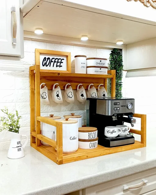 استند چوبی کافه بار مسترکلاغ – نظمدهنده برای قهوهساز و فنجان
