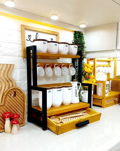توضیحات استند دورنگ پاسماوری طراحی و ساختاراستند دورنگ پاسماوری با ترکیب رنگهای جذاب و چیدمان هوشمندانه طراحی شده است. این استند شامل قفسههای چندلایه و یک کشو کاربردی است که برای قرارگیری ظروف پاسماوری، لیوانها و وسایل آشپزخانه ایدهآل میباشد. به علاوه، استفاده از چوب و فلز در ساخت آن، استحکام و زیبایی را بههمراه دارد.زمان آمادهسازیزمان آمادهسازی این استند 10 روز است. بنابراین، پس از ثبت سفارش، مشتریان میتوانند در این مدت منتظر تحویل محصول خود باشند. این مدت زمان به کیفیت و دقت در ساخت کمک میکند.پوشش رنگ و آبگریزی استند با رنگ گیاهی آبگریز خارجی رنگآمیزی میشود. این رنگ پس از گذشت 10 روز بهطور کامل آبگریز شده و مقاومت بالایی در برابر رطوبت ایجاد میکند. به همین دلیل، محصولی بادوام و مناسب برای محیطهای مرطوب مانند آشپزخانه به دست میآید.سفارشیسازی یکی از ویژگیهای برجسته این استند، امکان سفارشیسازی است. مشتریان میتوانند بر اساس نیازهای خود، تغییرات دلخواه را در طراحی، رنگ یا اندازه اعمال کنند. این گزینه انعطافپذیری بیشتری را به خریداران ارائه میدهد.نتیجهگیریدر نهایت، استند دورنگ پاسماوری با توجه به طراحی زیبا، زمان آمادهسازی مناسب، پوشش آبگریز و قابلیت سفارشیسازی، گزینهای عالی برای دکوراسیون آشپزخانه محسوب میشود.