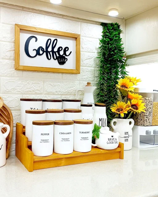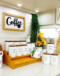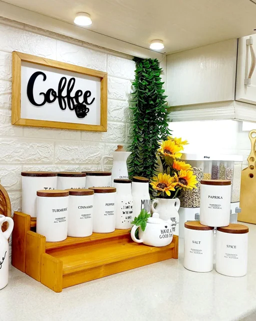 استند چوبی سه پله قهوه و ادویه: زیبایی و نظم در آشپزخانه