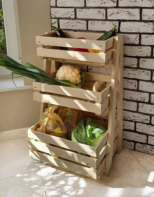 استند چوبی سه طبقه سبزیجات _ مسترکلاغ