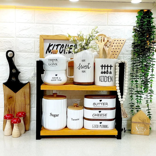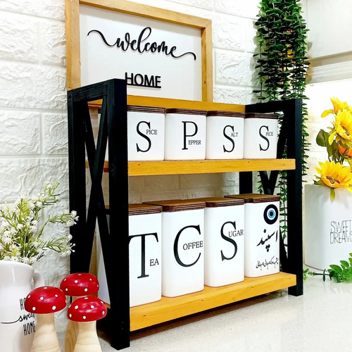 "استند پاسماوری چوبی آشپزخانه - قفسه تزئینی دوطبقه با طراحی مدرن و مقاوم"
